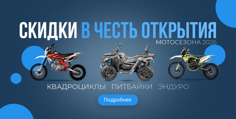 Мотосезон в наших широтах начинается резко — и лучше встретить его подготовленным. С 7 по 30 апреля скидки до 15% на квадроциклы, эндуро-мотоциклы и питбайки.